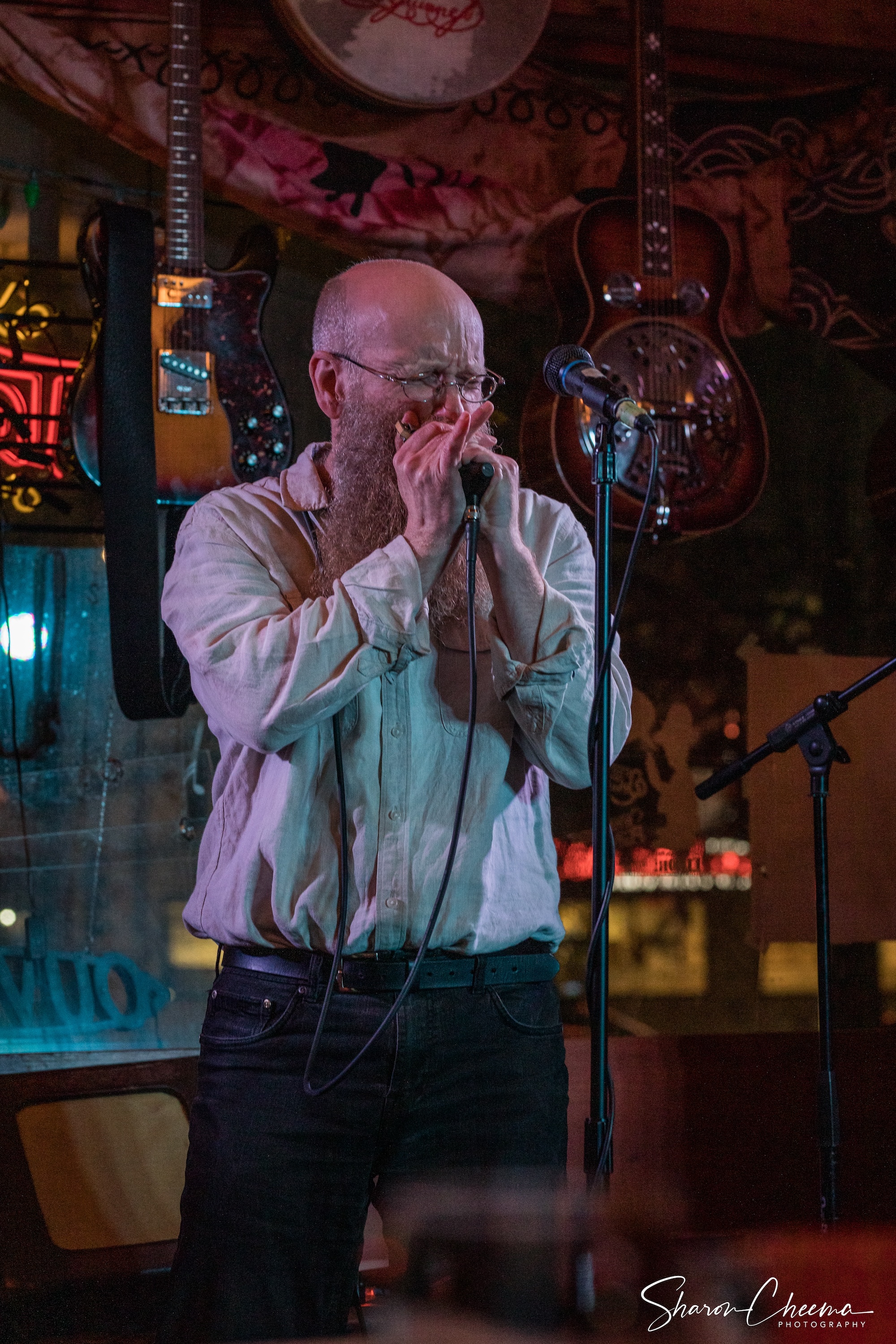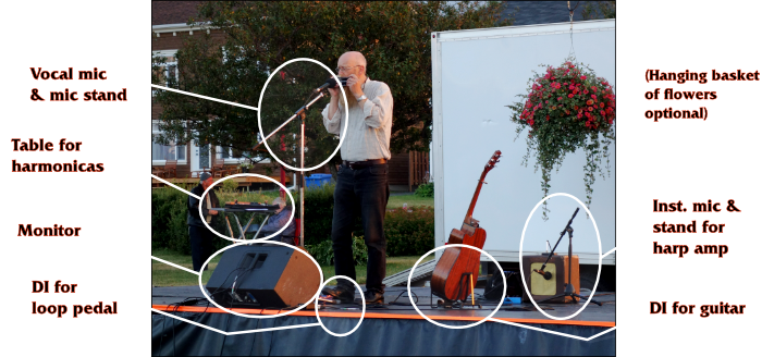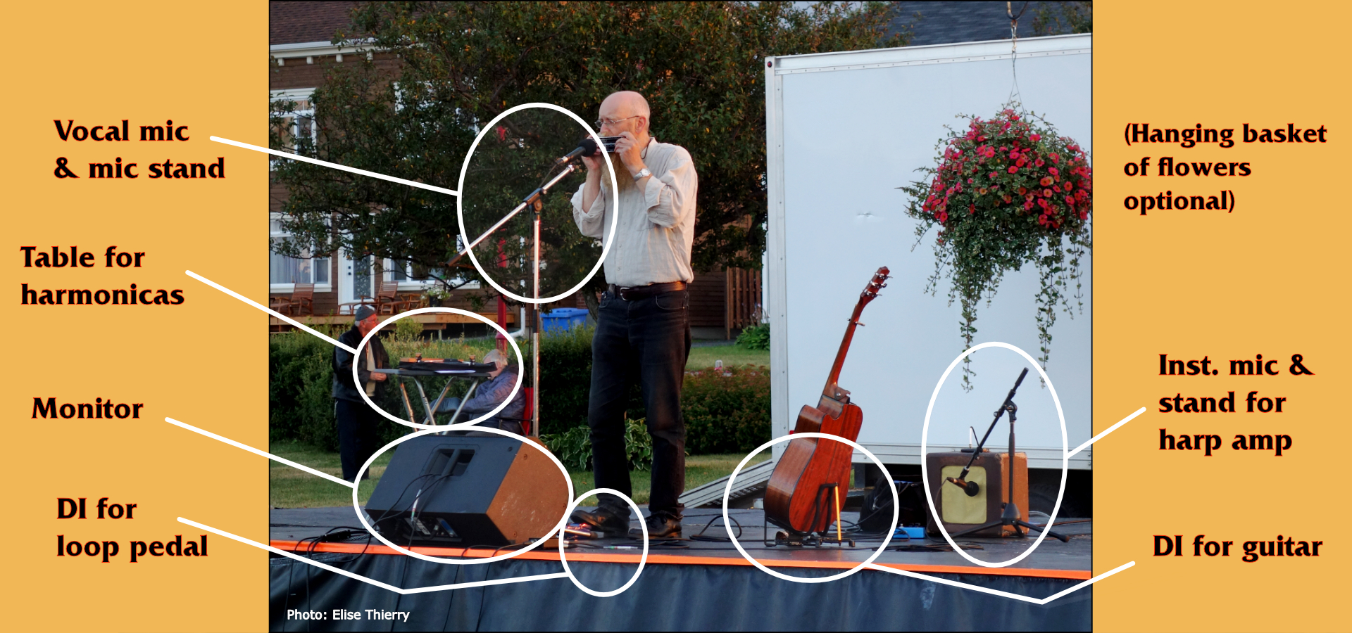 Stage PlotFor small venues with no sound system, John can provide his own. ![]() Photo: Elise Thierry |